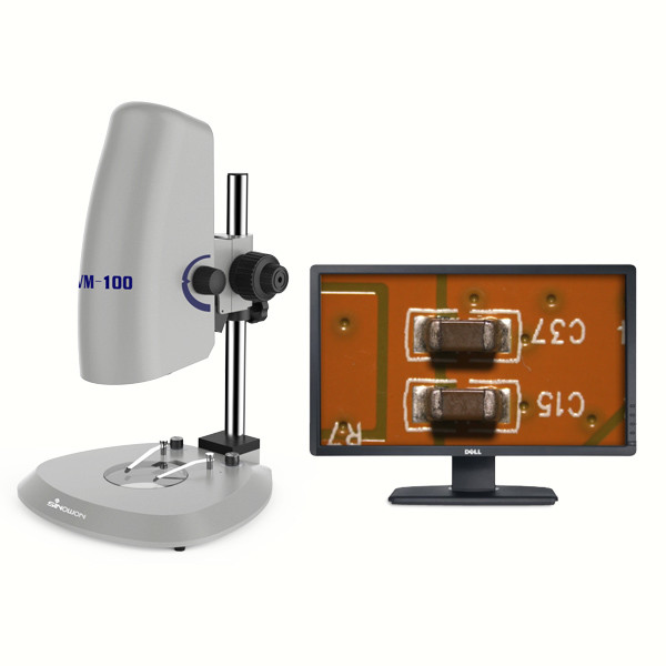 Video Microscope is widely used in the inspection of electronic industry production line, printed circuit board, weld detects ( such as wrong printing, edge collapse,etc)during printed circuit component, PC Board, VFD, and the identification of printing grid and painting, etc. It can display the zoom out image on the screen and save, magnify and print.